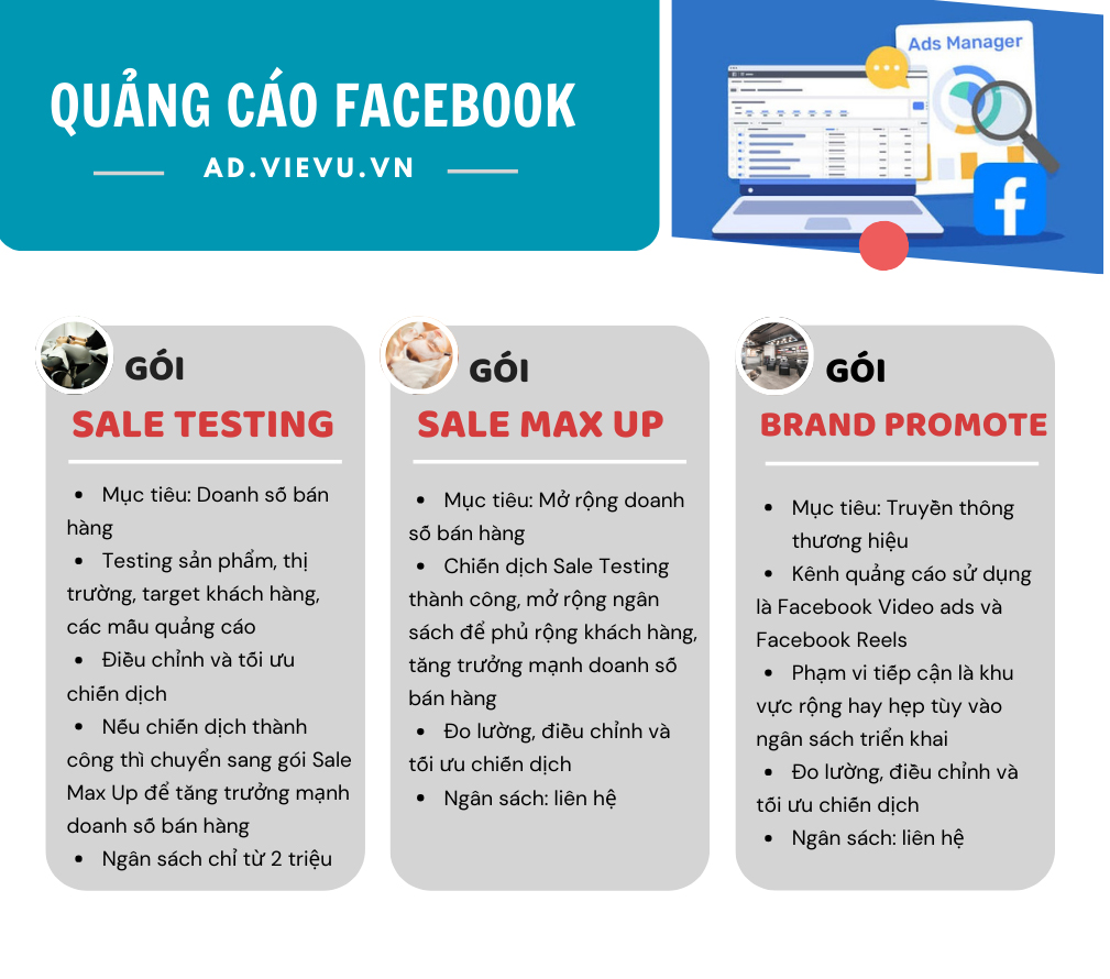 Chạy Quảng Cáo Facebook ads, Gói Sale Testing